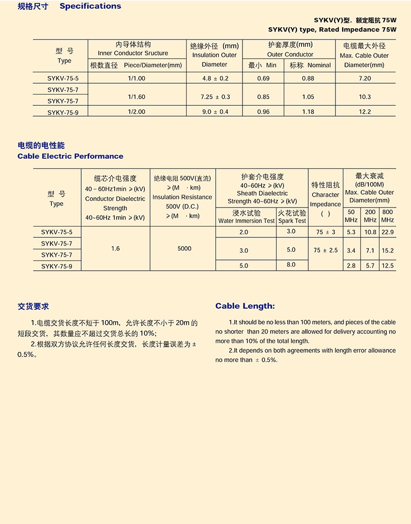 電纜分配系統(tǒng)用縱孔聚乙烯J緣同軸射